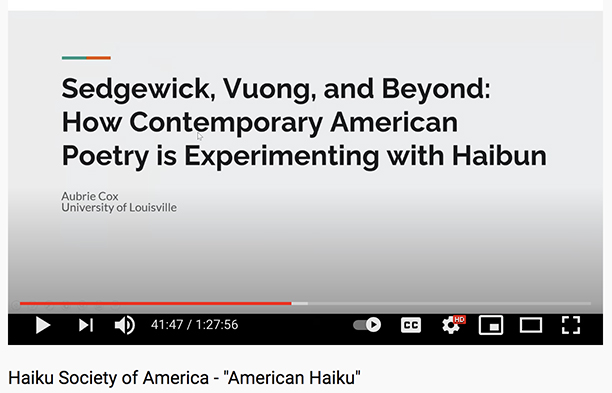 "Sedgewick, Vuong, and Beyond: How Contemporary American Poetry is Experimenting with Haibun," Aubrie Cox Warner, University of Louisville
